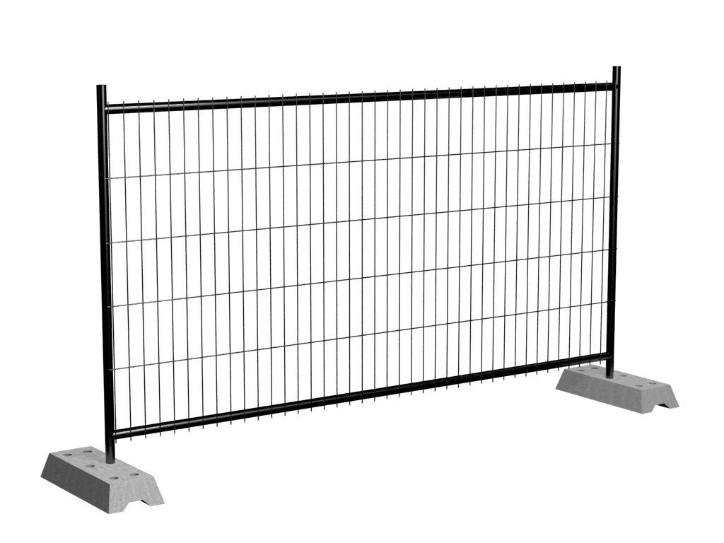 Временные ограждения для стройплощадок высотой 2 метра. Длина одной секции — 3,45 метра. Секции заполнены сварной сеткой из оцинкованной проволоки, что обеспечивает устойчивость к влаге, пыли, грязи. Рама выполнена из круглой трубы, что придает конструкции прочность. Для устойчивости секций используют тяжелые, массивные бетонные основания. Временные конструкции легко собираются: секции скрепляются между собой специальными соединениями.